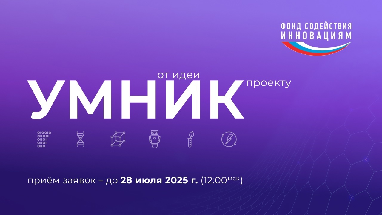 Заявки на конкурс «УМНИК-2025» принимаются до 12:00 (мск) 28 июля 2025 года.