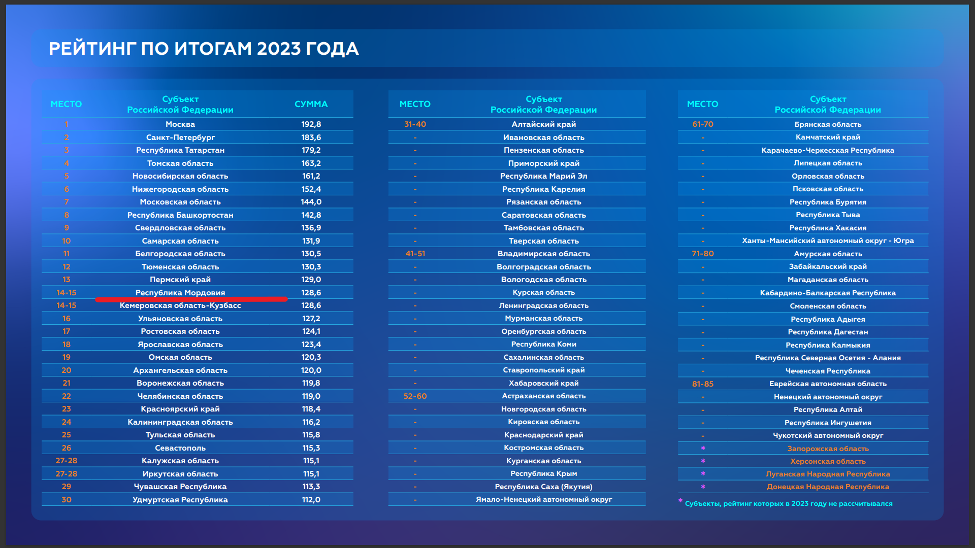 Для сравнения: в 2022 году Мордовия занимала 19 место.